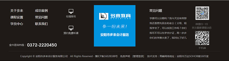 安陽市多來會計服務(wù)有限公司是由河南多來教育集團(tuán)和河南因心財務(wù)之家領(lǐng)導(dǎo)下首創(chuàng)一站式會計培訓(xùn)、企業(yè)注冊、代理記賬、商標(biāo)注冊、品牌策劃營銷等于一體的多元化企業(yè)會計服務(wù)平臺。致力于為中小型企業(yè)服務(wù),資源整合,培訓(xùn)出會計人才,為中原崛起助力、打造河南具影響力的企業(yè)服務(wù)平臺。